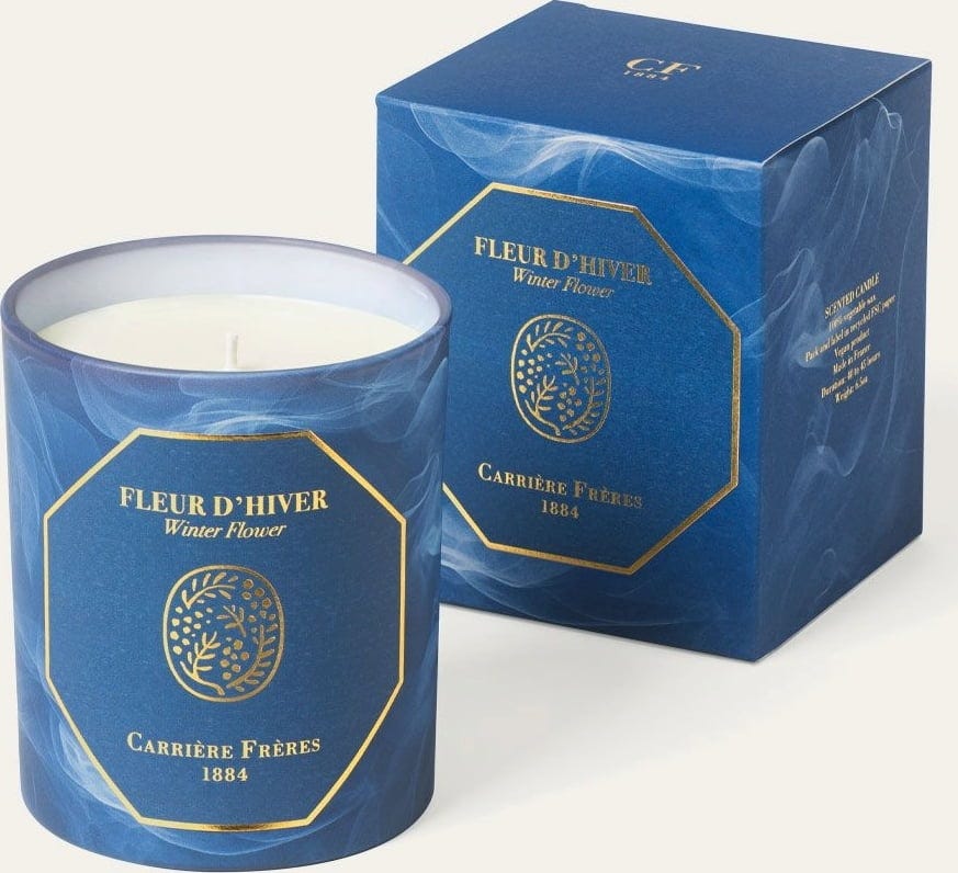 La Bougie Fleur d'Hiver de Carrière Frères évoque un paisible après-midi d'hiver, lorsque quelqu'un pousse la porte, un bouquet de fleurs fraîches à la main. Merveilleusement parfumée, accueillante et réconfortante, la composition s’ouvre sur les notes d’un thé aux épices pour réchauffer les sens. Offrant profondeur et réconfort à cet accord hivernal, il est rejoint par un cœur lumineux de rose d’hiver, de gardénia et de fleurs blanches, qui s’apaise sur un fond de santal et patchouli.