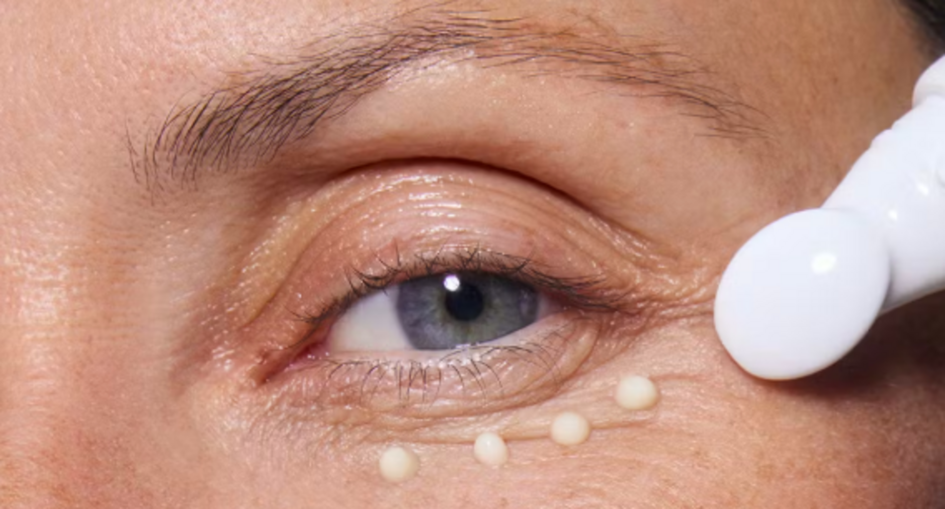 - Utilisez l’embout comme un pinceau : déposez la crème sous le contour de l’œil et massez délicatement de l’intérieur vers l’extérieur. Puis, appliquez-la sur l’ensemble du contour de l’œil jusqu’à absorption complète.