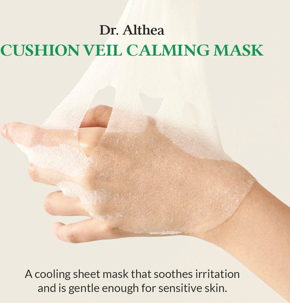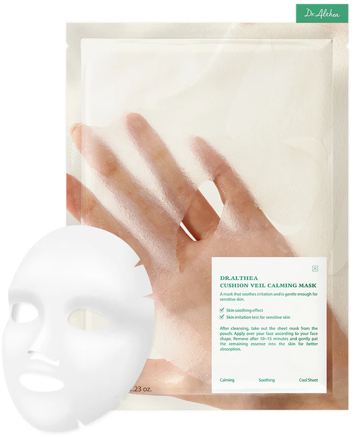 Le Cushion Veil Calming Mask de Dr. Althea offre un véritable moment de bien-être pour les peaux sensibles. Dès l’application, vous ressentirez un effet fraîcheur apaisant grâce à la technologie gel innovante enrichie en poudre de Cold-Stone. Grâce au complexe Cica, à l’extrait de camomille et au panthénol, la peau paraît rapidement plus équilibrée, intensément hydratée et renforcée. Offrez-vous 10 à 15 minutes de pure détente et découvrez une peau visiblement moins irritée, plus lisse et toute douce.