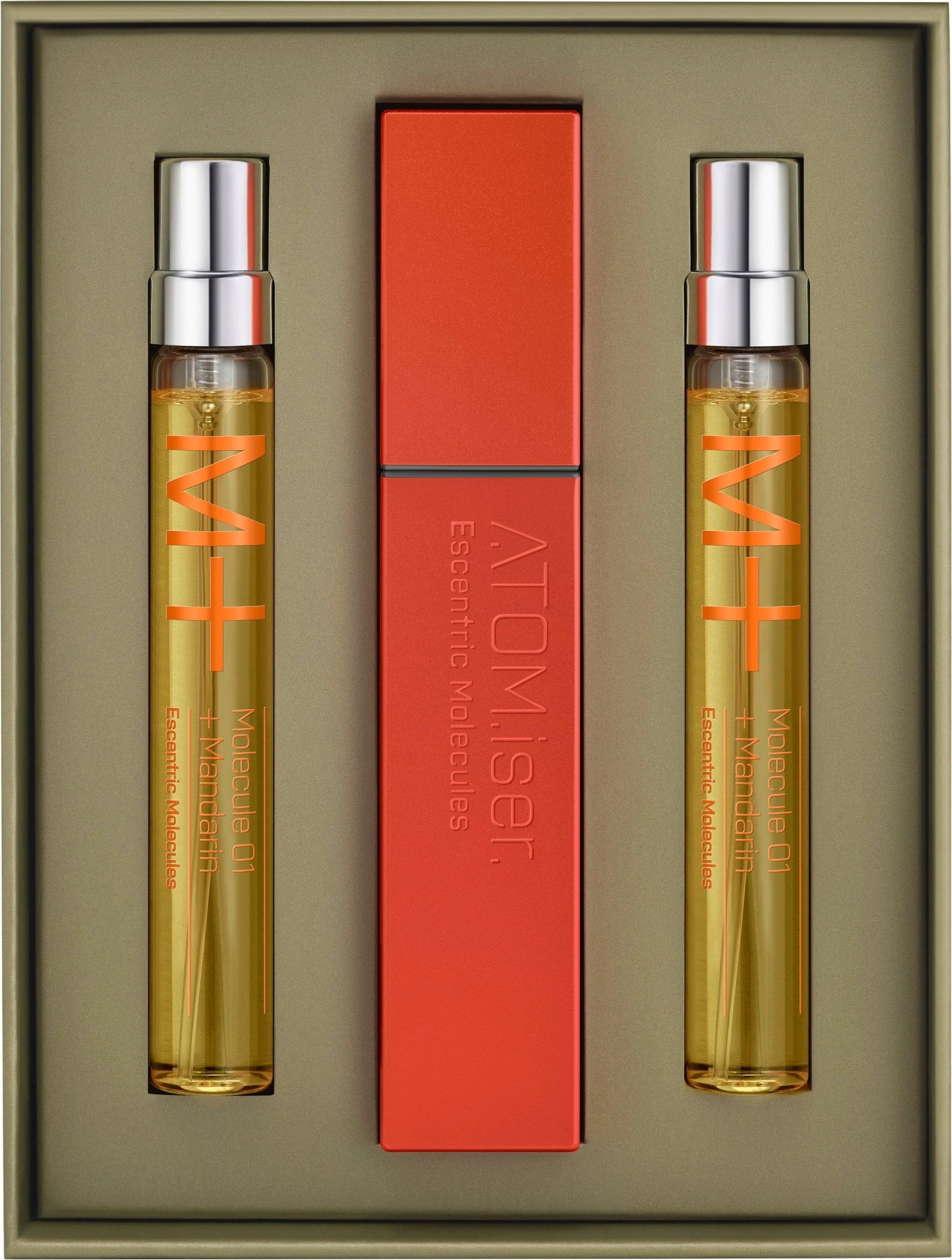 Le Molecule 01 + Mandarin ATOM.iser Set de Escentric Molecules est un coffret luxueux composé de trois recharges de Molecule 01 + Mandarin Eau de Toilette, ainsi que d’un boîtier à parfum pratique, conçu pour offrir durabilité et confort de voyage haut de gamme, afin de vous accompagner avec classe partout en déplacement.