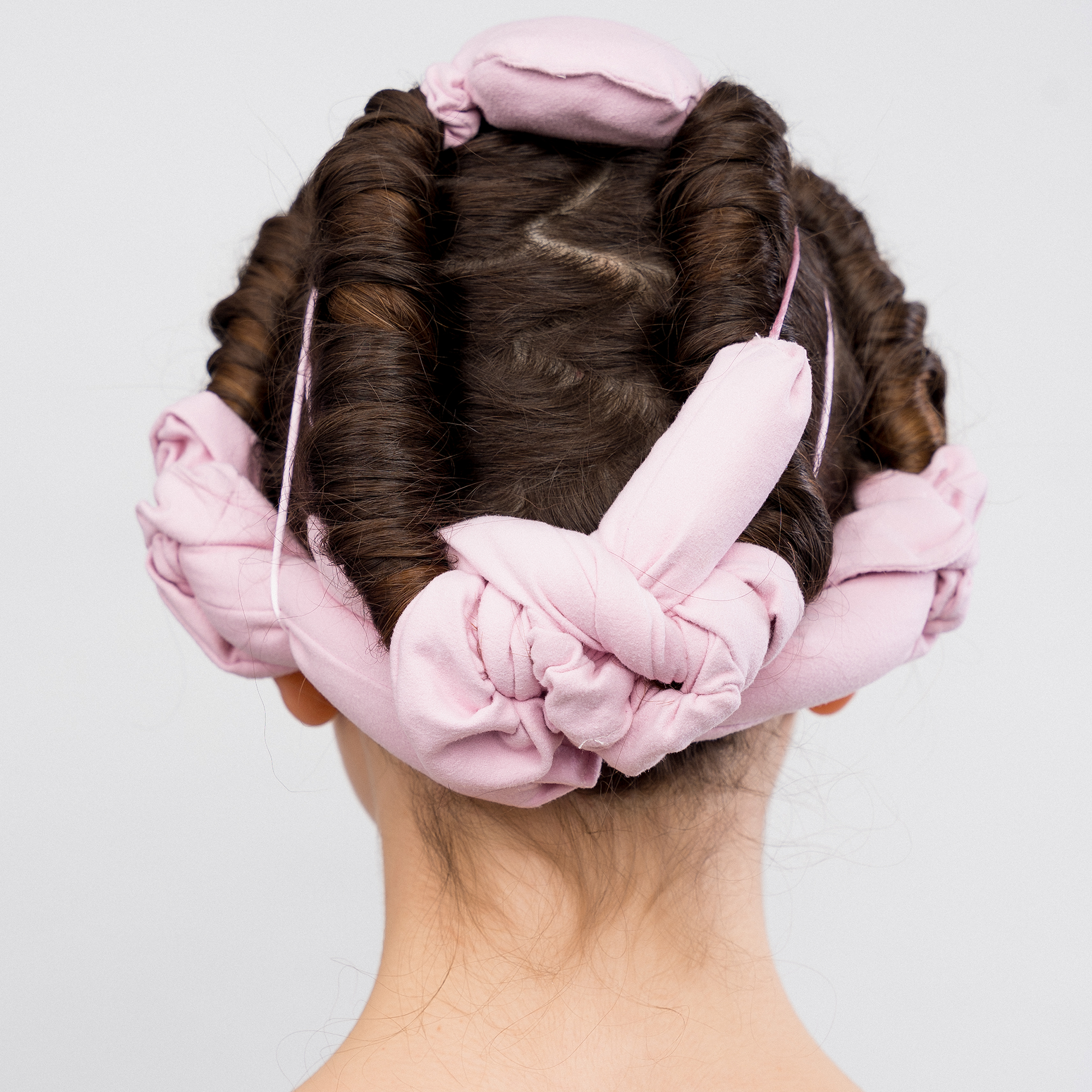 - Fixez l'extrémité de chaque section avec les chouchous fournis et les rassembler dans la nuque pour les attacher.