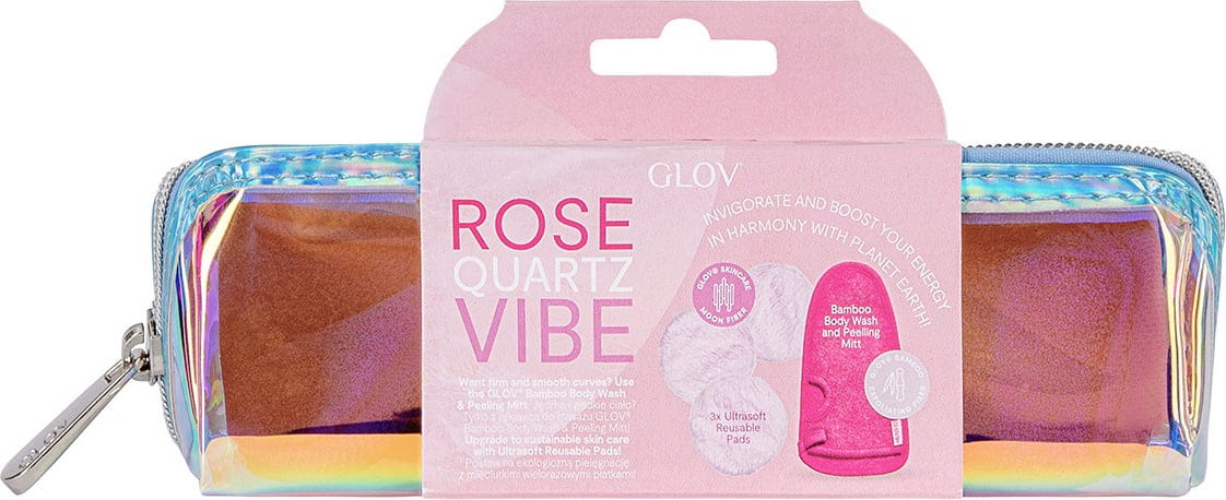 Le Rose Quartz Vibe Set de GLOV vous propose un nettoyage complet et durable du visage et du corps : les Moon Fiber Pads ultra-doux sont parfaits pour le visage, tandis que le gant de nettoyage et d'exfoliation en viscose de bambou est conçu pour votre corps et laisse la peau douce.