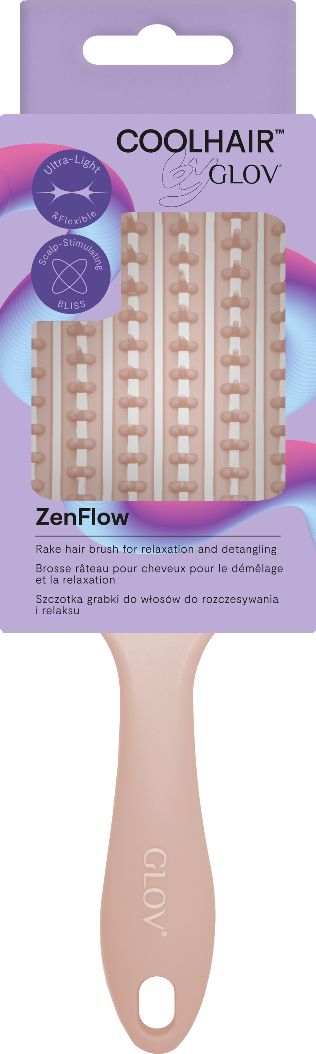 Conseil de pro : Pour un moment de détente ultime, utiliser la ZenFlow Hair Brush sur cheveux humides avec votre soins leave-in préféré, ou brosser les cheveux tête en bas pour un effet de massage optimal.