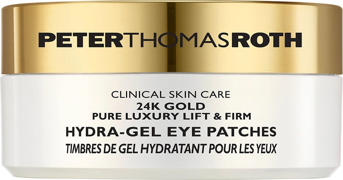 Les 24K Gold Pure Luxury Lift & Firm Hydra-Gel Eye Patches de Peter Thomas Roth contiennent de l’or pur 24 carats et de l’or colloïdal pour raffermir et revitaliser le contour des yeux en seulement 10 minutes. Utilisé depuis Cléopâtre pour ses vertus anti-âge exceptionnelles, l’or favorise le lifting et la fermeté de la peau. Les patchs apaisent également tout en apportant un éclat lumineux. Ils atténuent rides et ridules, procurent une hydratation intense grâce à l’acide hyaluronique et au collagène hydrolysé, et offrent un effet rafraîchissant. La formule est enrichie en caféine pour un effet revitalisant, tandis que le délicat parfum de lavande stimule les sens.