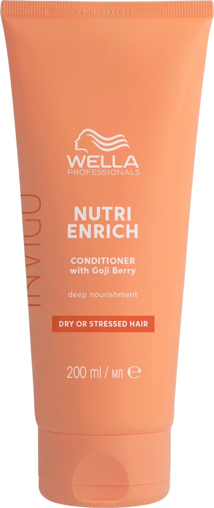 Le Invigo Nutri Enrich Conditioner de Wella Professionals est l'après-shampoing instantanément hydratant idéal pour les cheveux secs, fragilisés et abîmés. Dès la première utilisation, sa formule riche à l’acide oléique et au panthénol libère une hydratation précieuse au cœur de chaque fibre pour aider à la régénérer de l’intérieur. Le complexe Nutri-Enrich-Blend™ exclusif à la baie de Goji est riche en vitamines, tandis que la vitamine E protectrice aide à préserver vos cheveux des agressions extérieures. Dites adieu aux frisottis rebelles et retrouvez des cheveux lisses et doux, brillants. Pour une routine de soin complète, il est conseillé de l’associer au shampoing adapté et au masque hebdomadaire de la gamme, afin d’offrir à vos cheveux de véritables soins nourrissants en profondeur.
